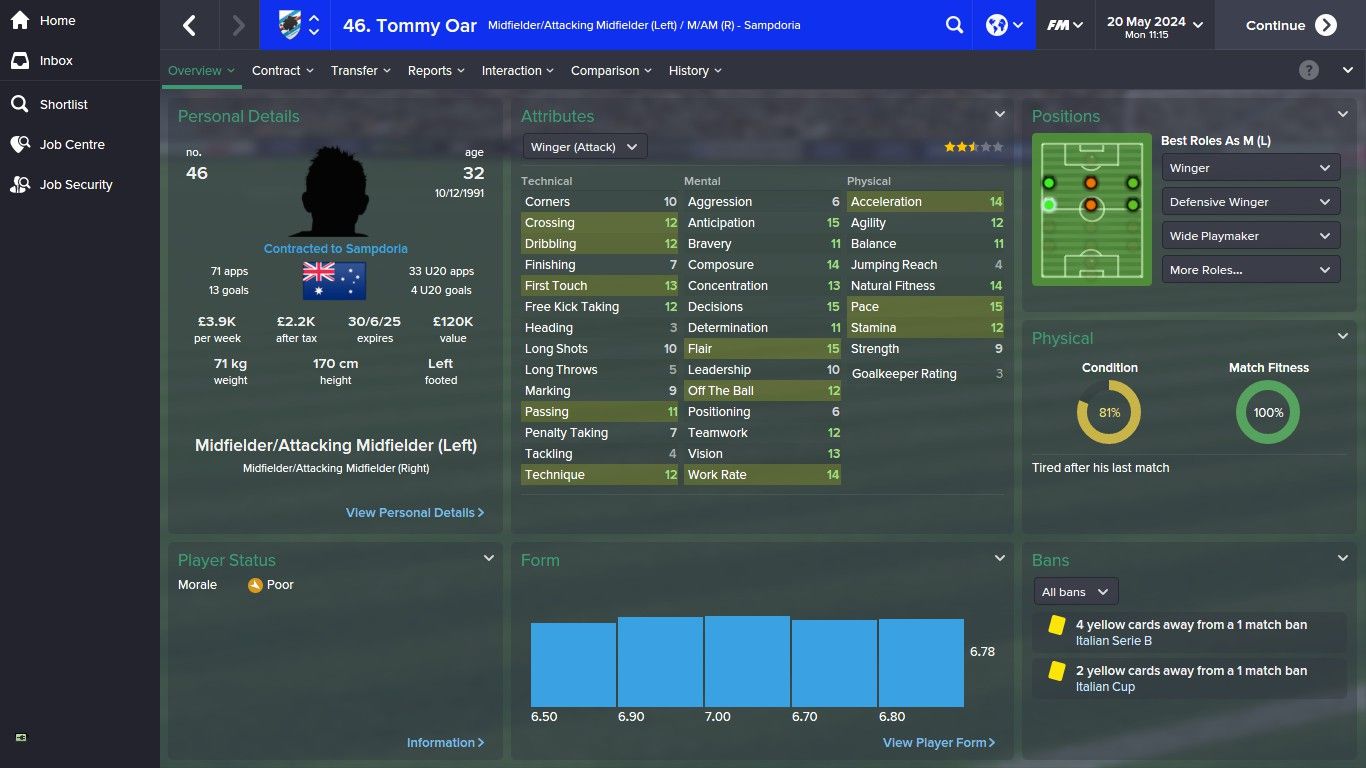 - upload FM15 screenshots of him that showcase his attributes and historic performances.