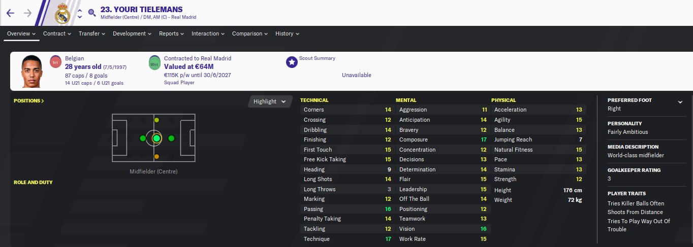 To check on the player traits of Youri Tielemans get Genie Scout or see the screenshots below. |