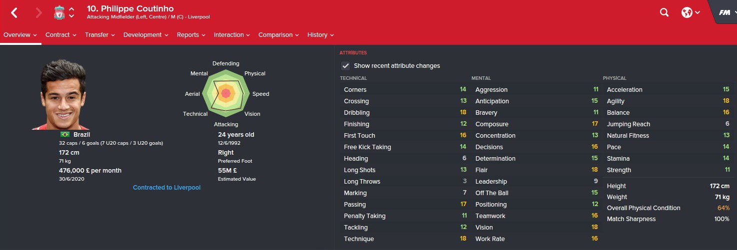 Philippe Coutinho FM26 Screenshots