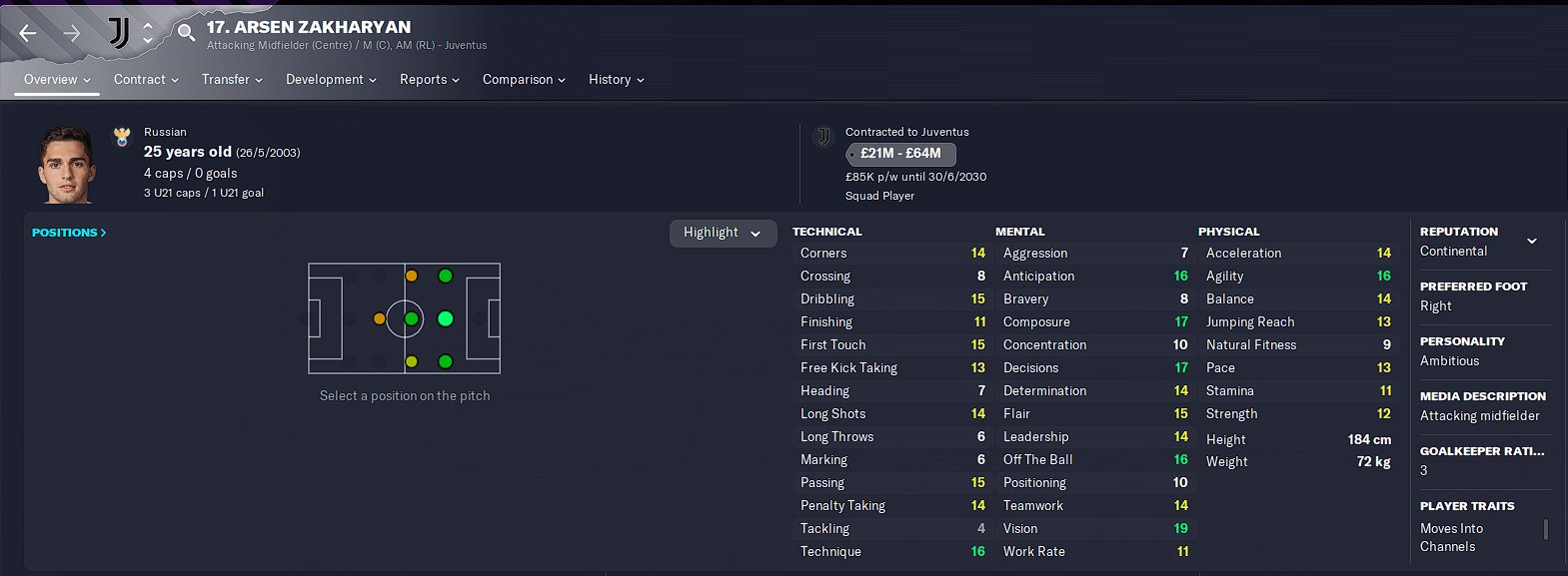 Arsen Zakharyan FM24 Screenshots