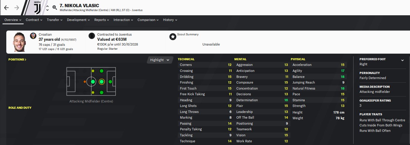 | To check on the player traits of Nikola Vlasic get Genie Scout or see the screenshots below. |