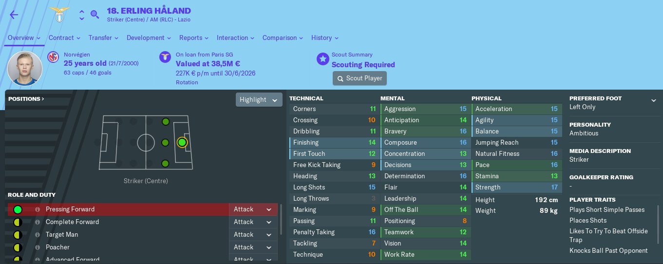 | To check on the player traits of Erling Haland get Genie Scout or see the screenshots below. |