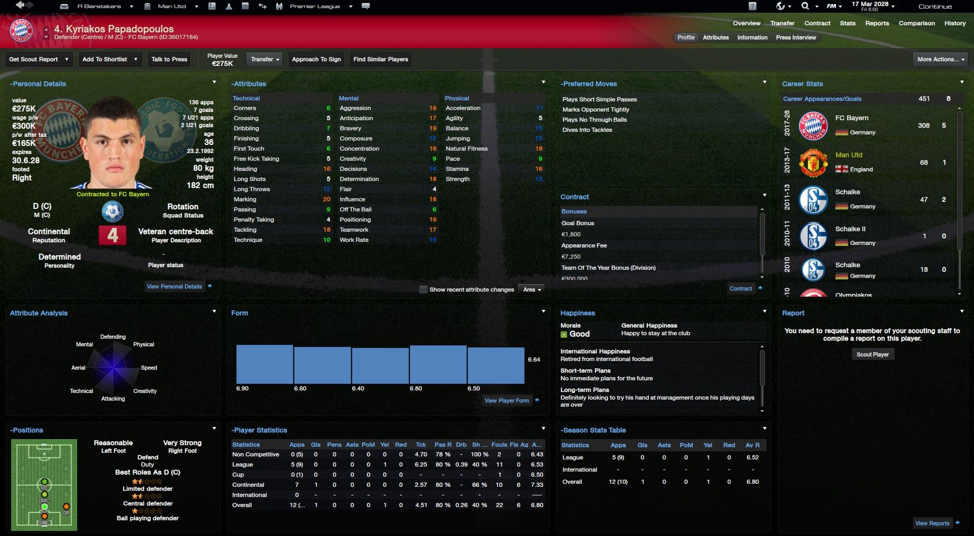 Kyriakos Papadopoulos profile in Football Manager 2024. Kyriakos Papadopoulos is a 20 years old professional footballer from Greece. His preferred foot is Right and the best role is . In the first season of FM24, he is contracted to Schalke until 30-Jun-2016 earning £39K per week and has a market value of 6M. You can help the player reach that full FM24 potential with proper training.
