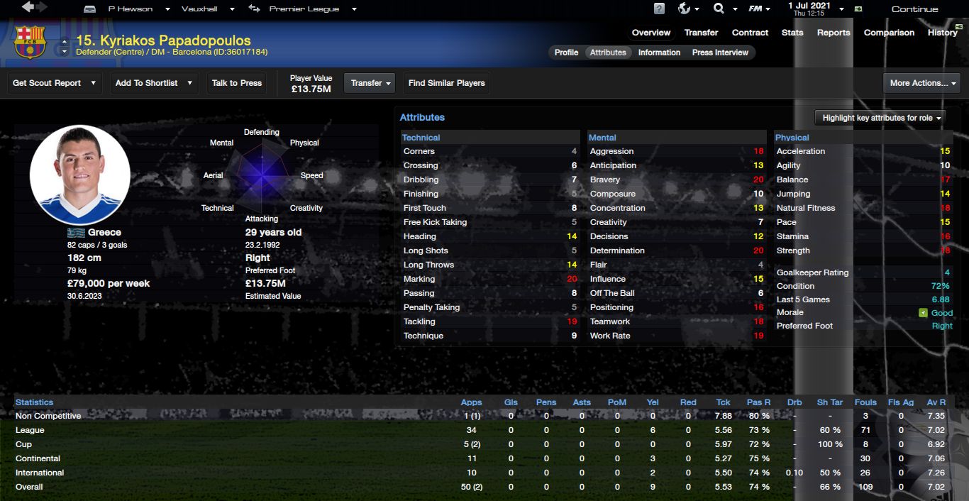 One of the best Defenders you’ll find in the game, apart from the regens that might appear later on. Kyriakos is already a big asset to the 1st team squad of schalke, and that’s what you’ll notice when you’ll try to make a bid on him.
