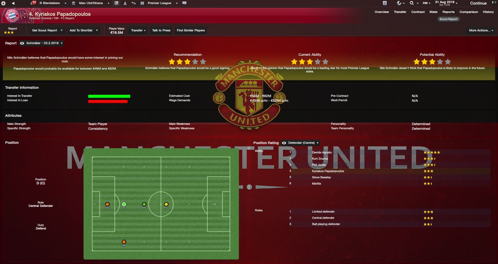 As I said he is one of the best defenders (Potential wise) in the game, and thus be prepared to pay a price between 25 and 40M. Not sure how much he will cost after the 1st 2 seasons but I can guarantee that he won’t get cheaper, since he gets better and better while the game proceeds. This will also be the point where other teams might get more and more interested in him.