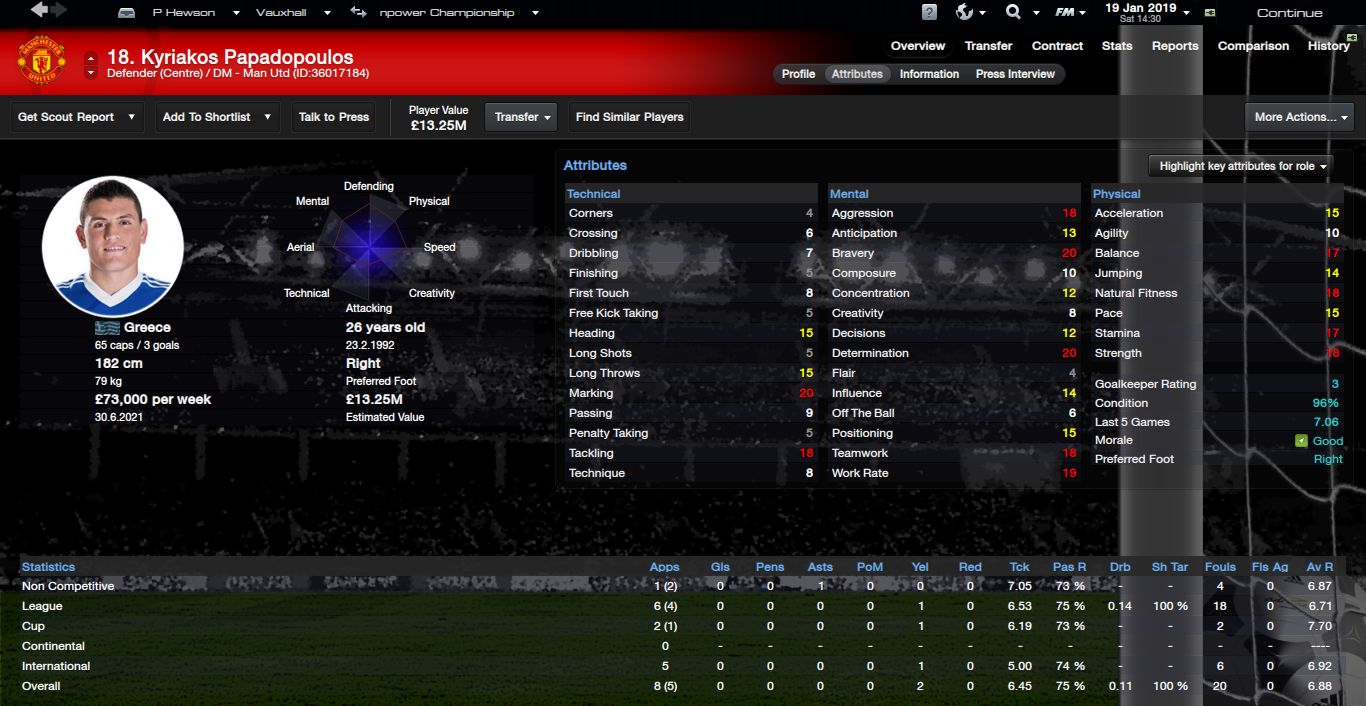 Kyriakos is a determined player, during team talks or team meeting he normally tends to react well or very well. Only time he does get angry is when you accidently say he is performing shit while he has a rating of 8 at half time.
