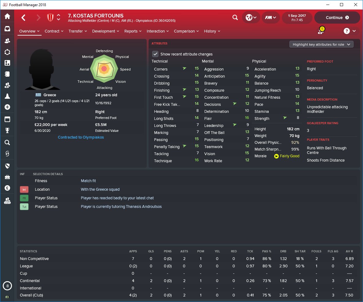 Kostas Fortounis FM26 Screenshots