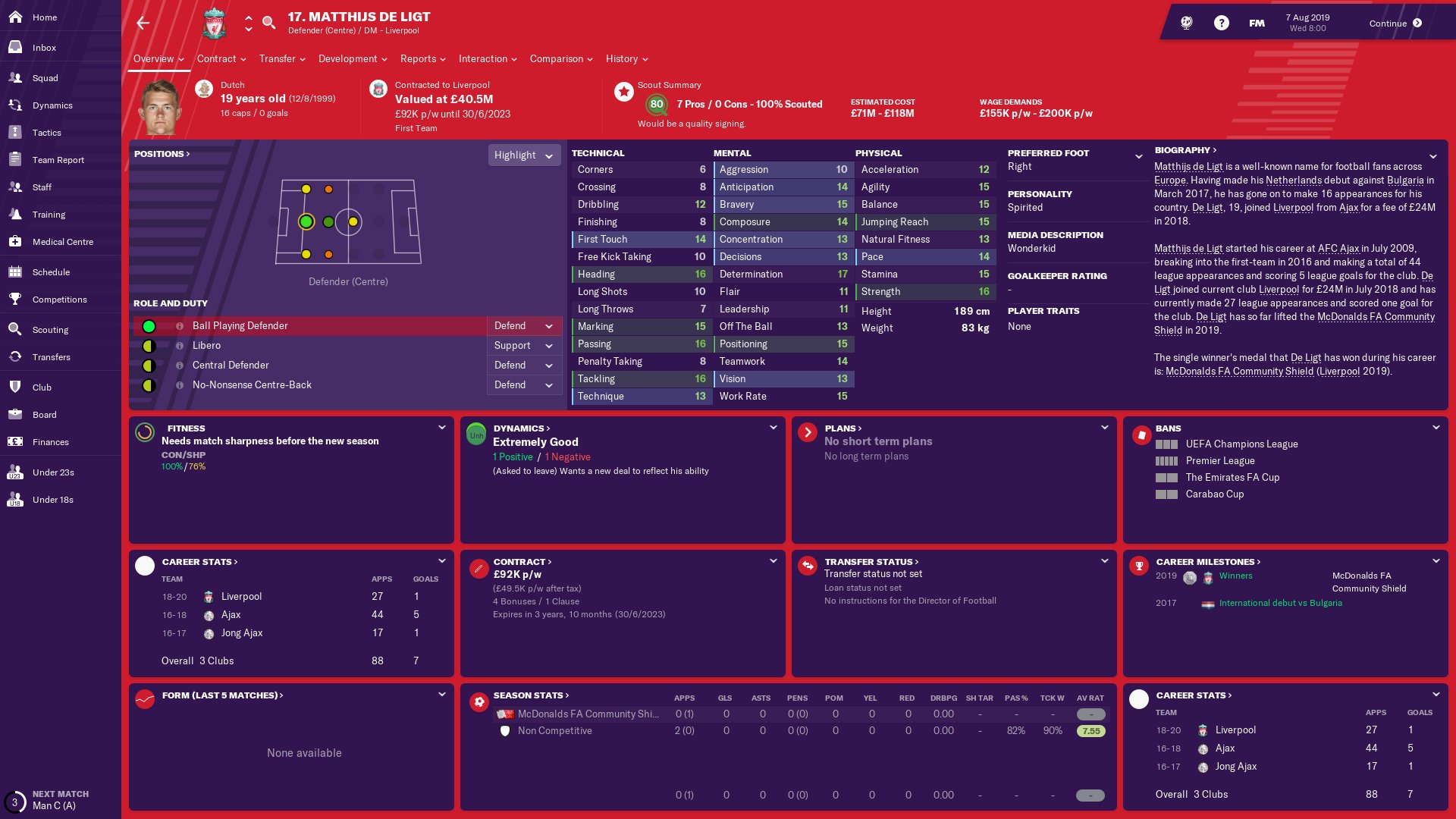 Matthijs de Ligt FM26 Screenshots