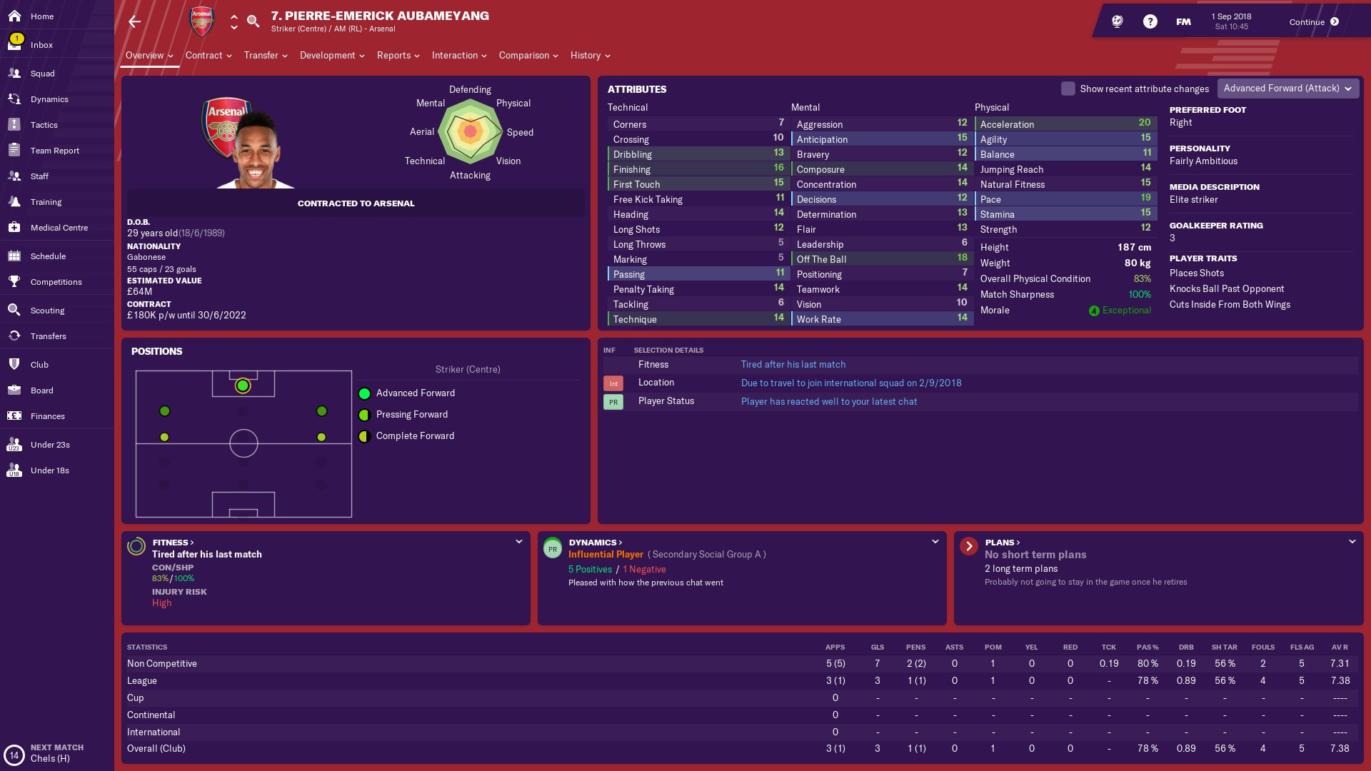 Pierre-Emerick Aubameyang FM26 Screenshots