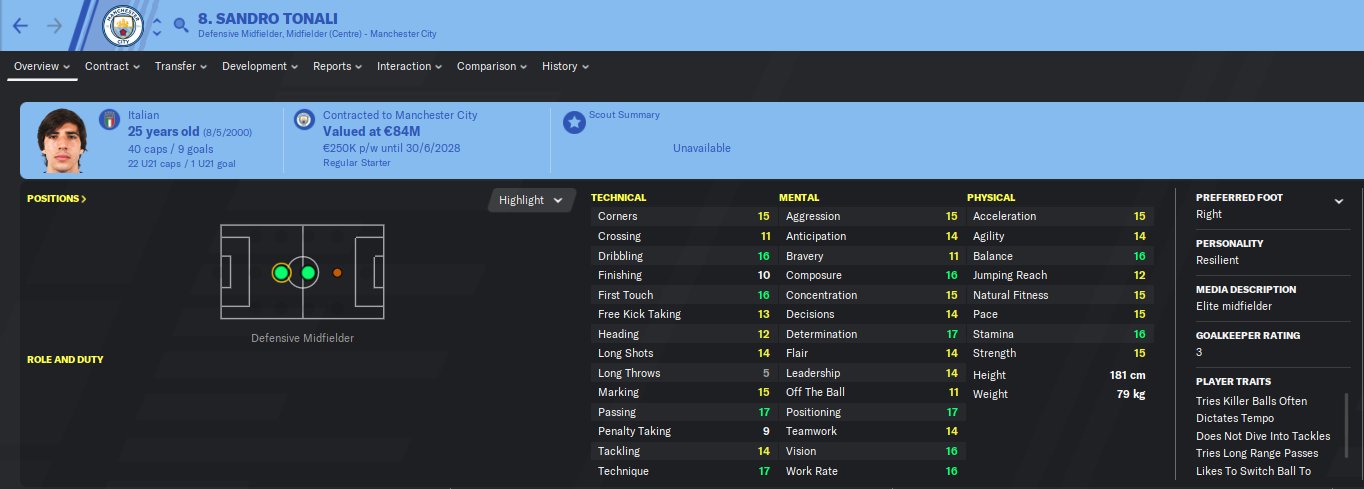 | To check on the player traits of Sandro Tonali get Genie Scout or see the screenshots below. |