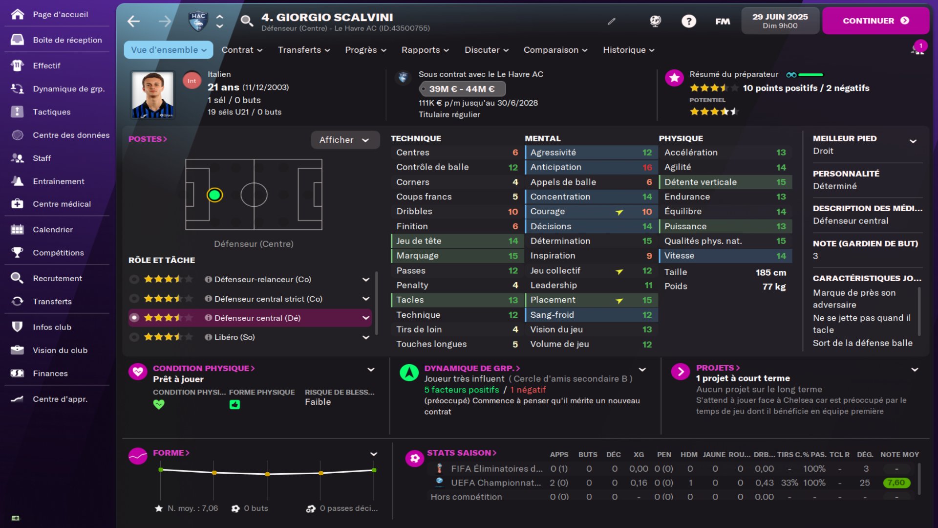 -Personality : Great mentality, never causes problems. Often showed up defensively in big games of UCL. Sad he lack a bit of leadership cause I would put him as my captain otherwise.