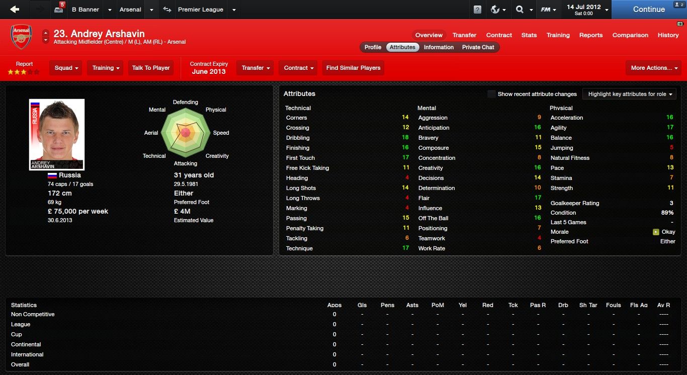 Andrey Arshavin FM18 Screenshots