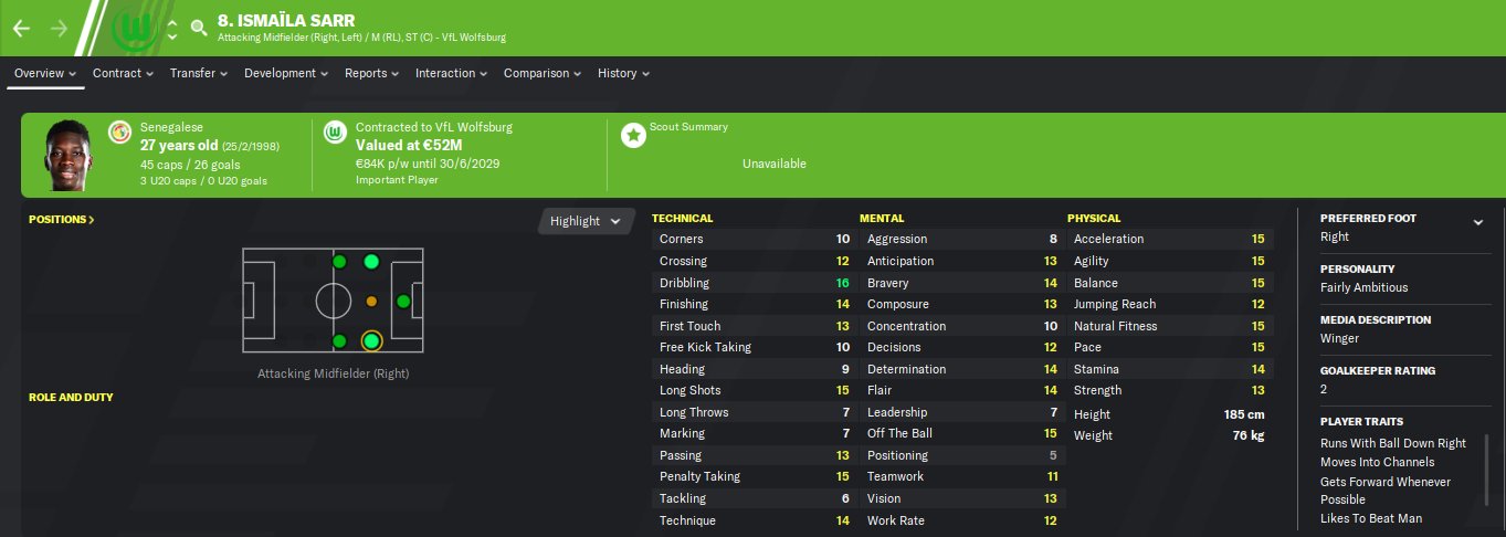 | To check on the player traits of Ismaila Sarr get Genie Scout or see the screenshots below. |