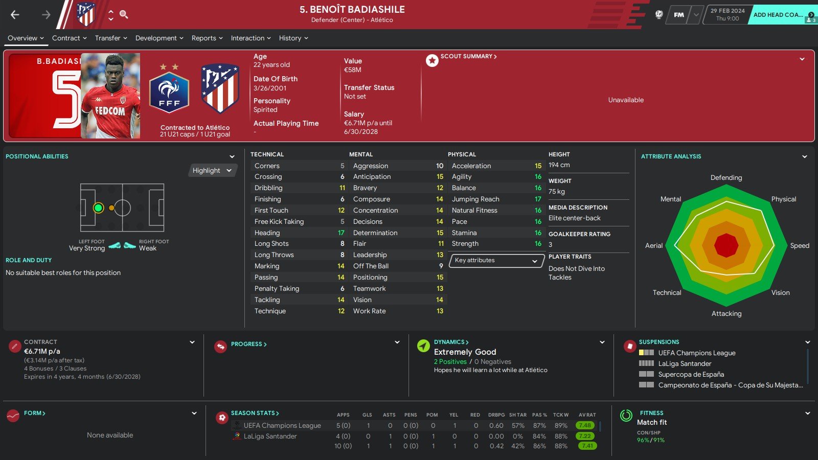 Benoit Badiashile FM26 Screenshots