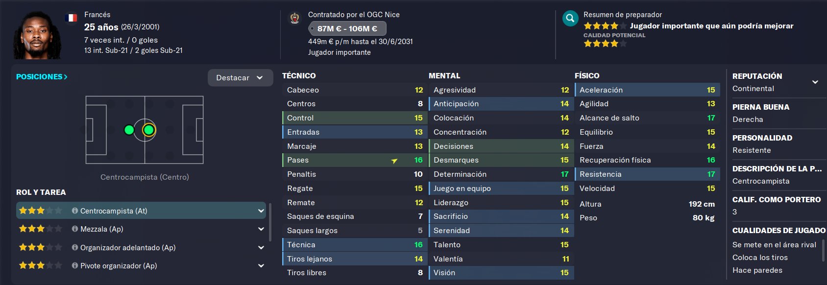 Khephren Thuram profile in Football Manager 2024. Khephren Thuram is a 21 years old professional footballer from France. His preferred foot is Right and his best role is Deep Lying Playmaker. In the first season of FM24, he is contracted to OGC Nice until 30-Jun-2025 earning £21K per week and has a market value of 20M. You can help him reach his full FM24 potential with proper training.