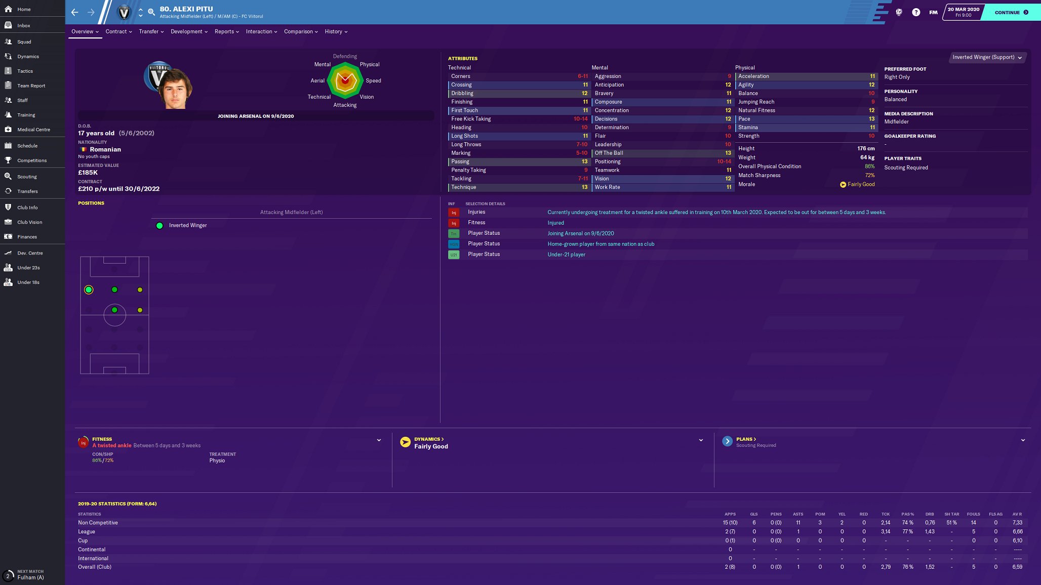 - upload FM20 screenshots of him that showcase his attributes and historic performances.
