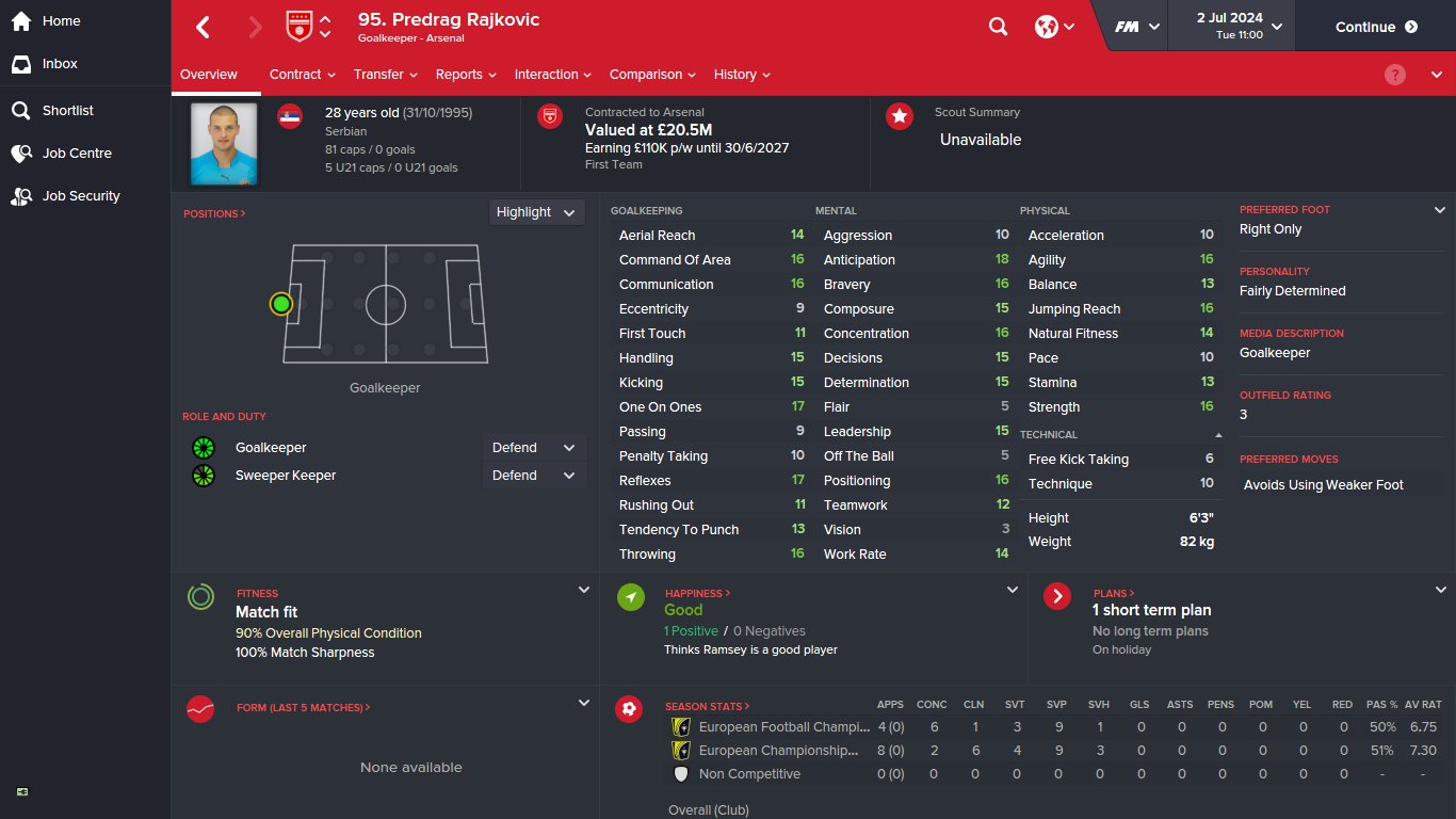 | To check on the player traits of Predrag Rajkovic get Genie Scout or see the screenshots below. |