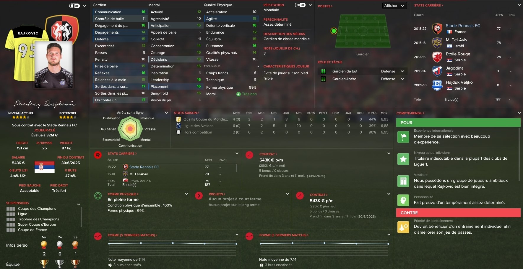 | To check on the player traits of Predrag Rajkovic get Genie Scout or see the screenshots below. |