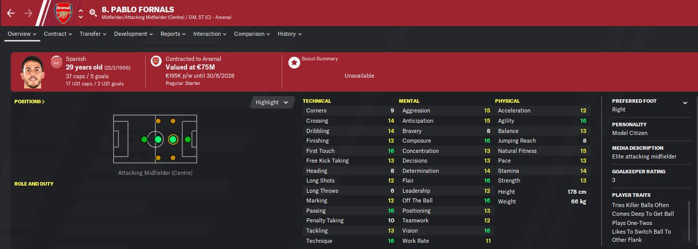 Pablo Fornals profile in Football Manager 2026. Pablo Fornals is a 23 years old professional footballer from Spain. His preferred foot is Right and the best role is Advanced Playmaker. In the first season of FM26, he is contracted to West Ham until 30-Jun-2024 earning £80K per week and has a market value of 27M. You can help the player reach that full FM26 potential with proper training.