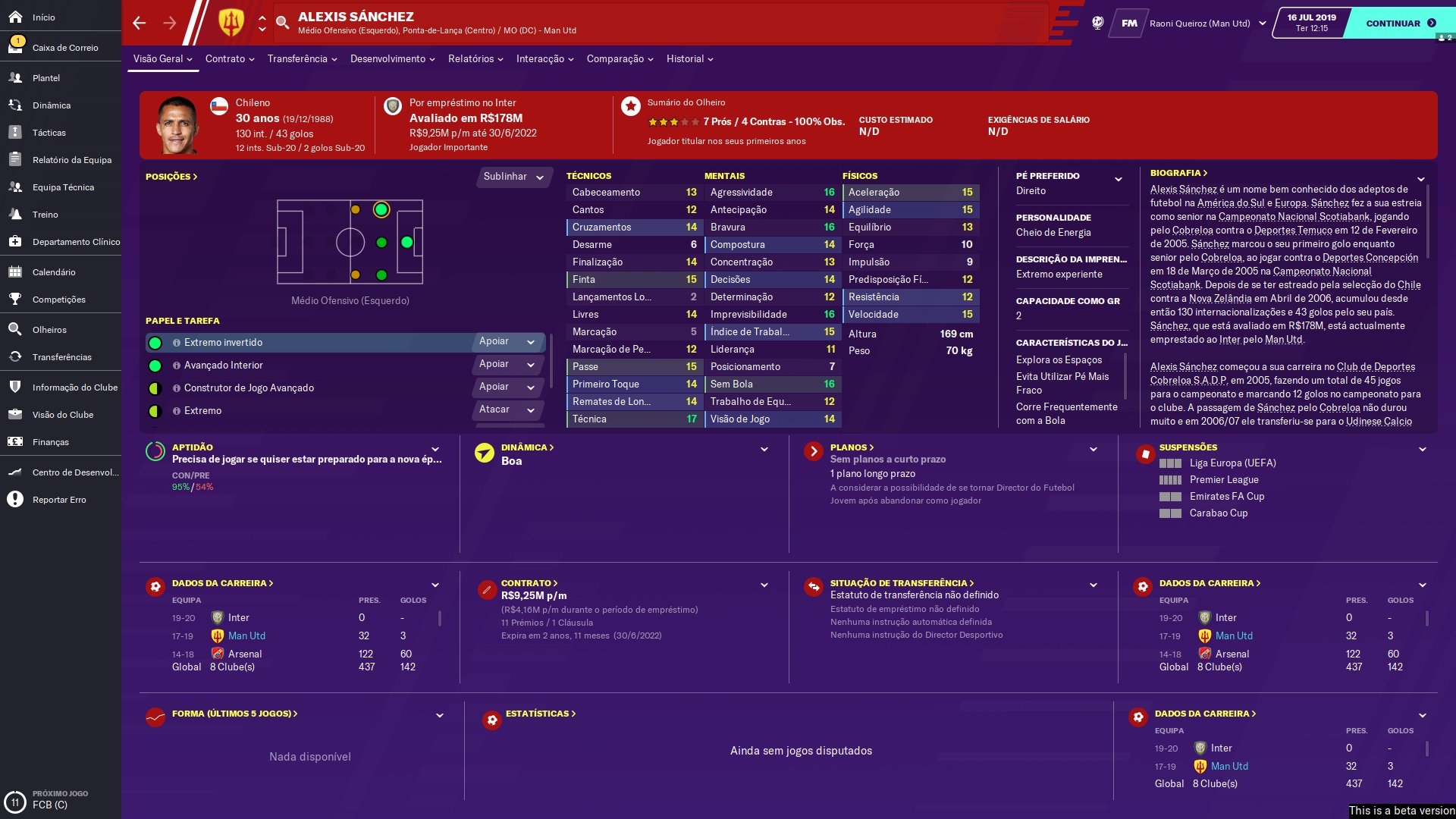 Alexis Sanchez FM26 Screenshots