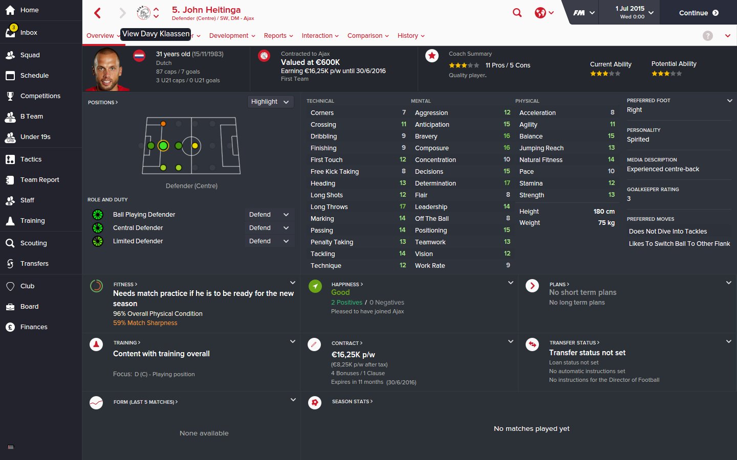 John Heitinga FM16 Screenshots
