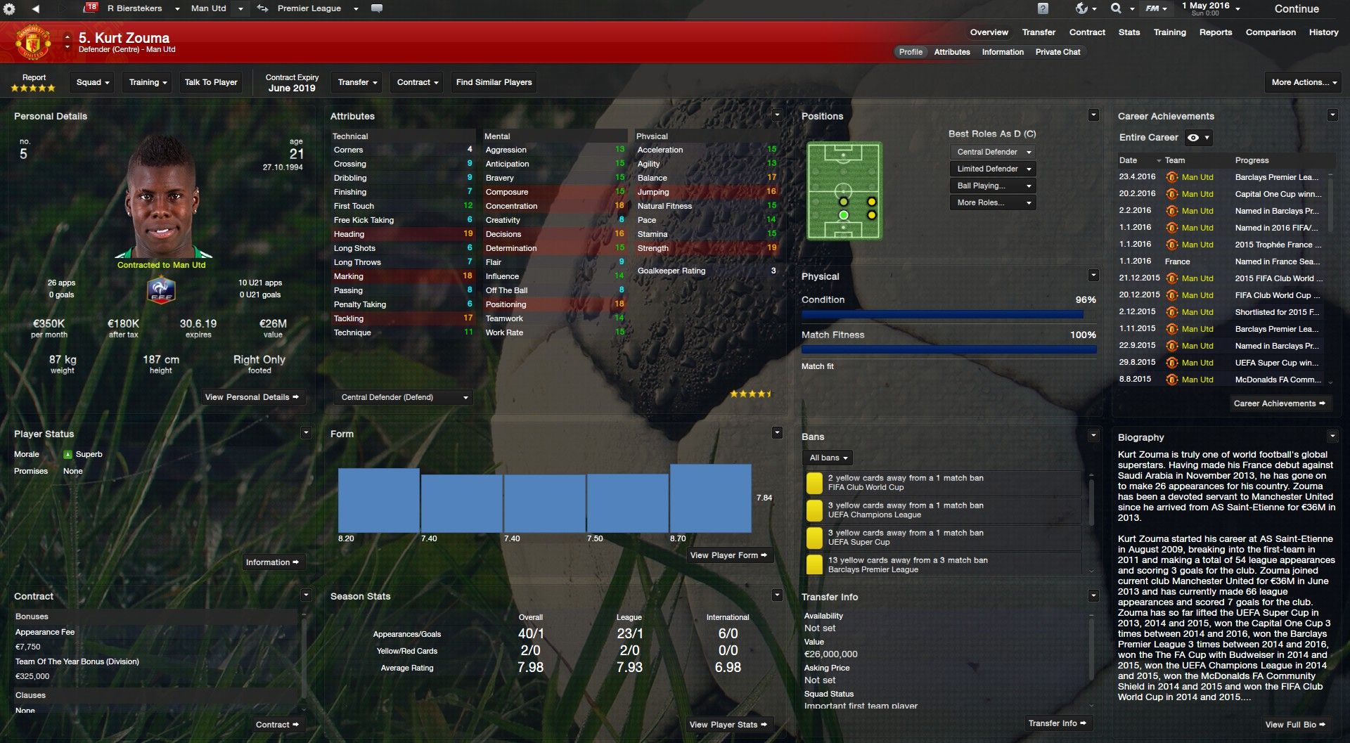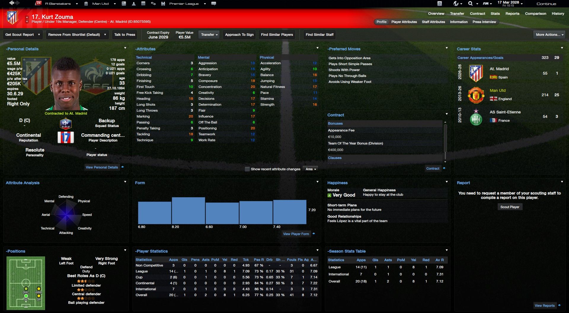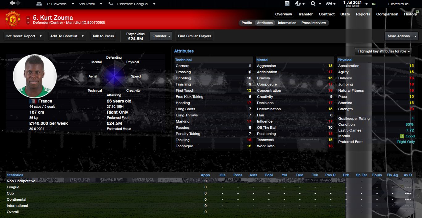 Kurt Zouma FM26 Screenshots