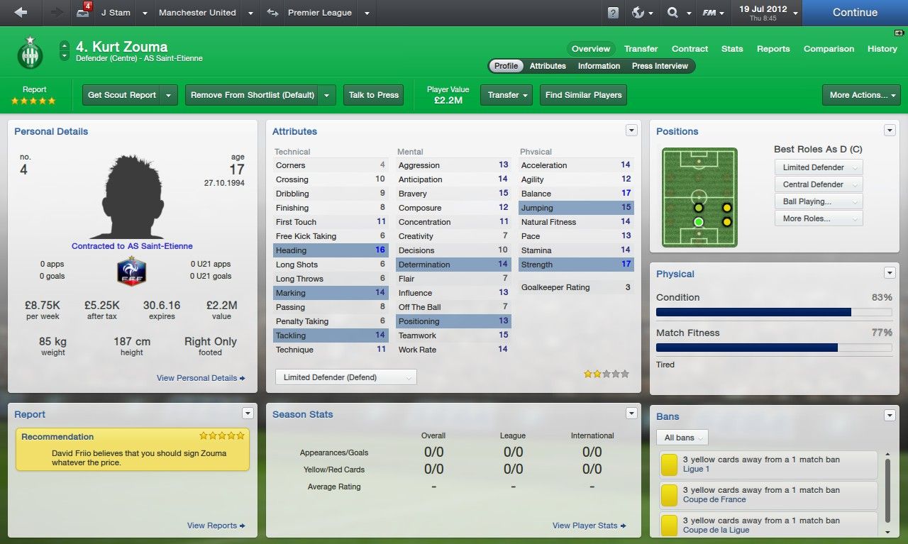 Kurt Zouma FM13 Reviews