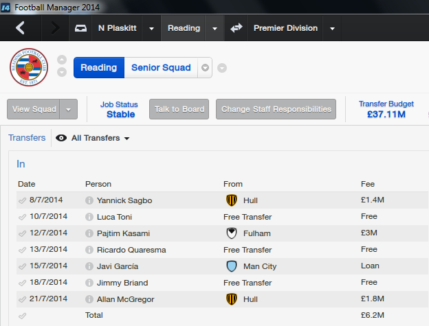 I knew this was going to be a tough task, not only did the chairman want me to avoid relegation he also wanted me to finish in a secure mid table spot, this was going to be difficult with the players I had, but the chairman had faith and gave me a respectable £25m transfer kitty to make this possible, he has put a lot of trust an money in me so I need to return the favour and meet his expectations! So I wrote up my shortlist and fielded some calls and I was chuffed with what I managed to get in, almost every player I went in for wanted to buy into the project that is going on here, and here is a look at who I managed to bring in: