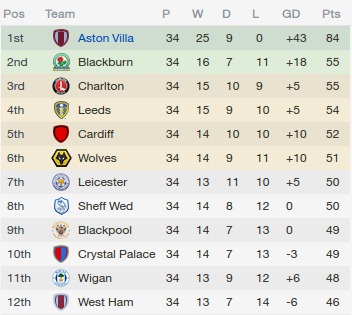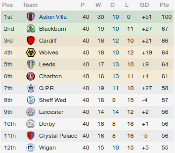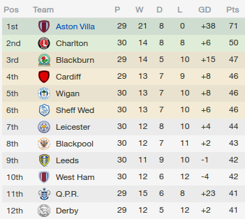 SKYBET CHAMPIONSHIP TABLE - TOP HALF