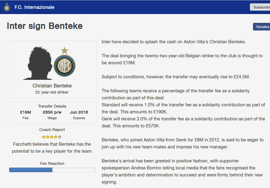 Mate, this is a very interesting story so far! Always had a bit of a fascination with Inter. Getting Benteke for just £13m is the definition of bargain! Will be following eagerly!