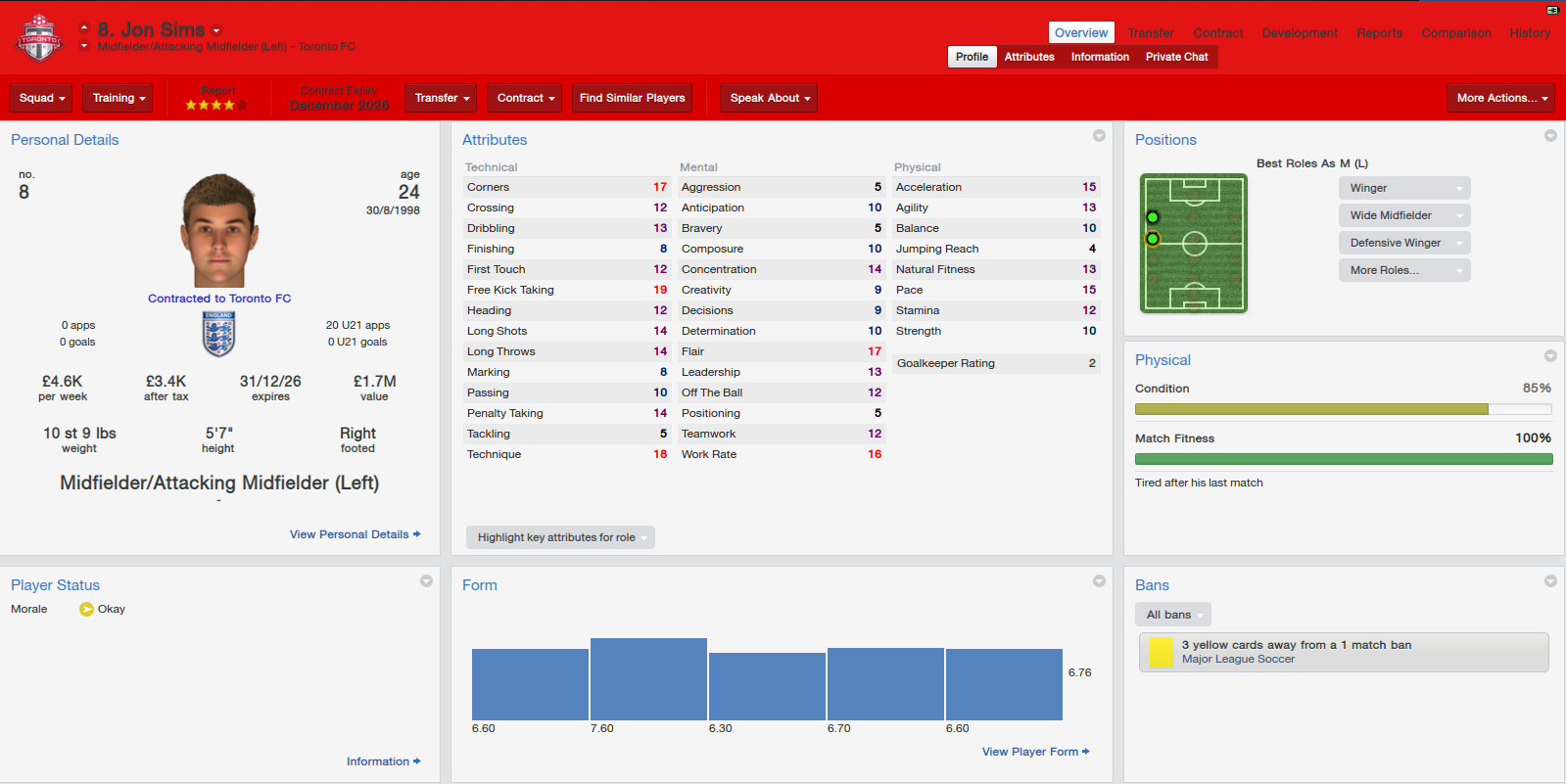 Going into the regular season Pairpoint had his team working long and hard on the training pitch to ensure that they went into the campaign fully prepared and entirely set in the way that he wanted them to play. Despite the best wishes of the Toronto board Will was determined to get his team playing what he called “the right way”; keeping the ball, fast paced short passing, with new style inverted wingers and a no nonsense in your face defensive approach. He favoured an attacking 4-3-3 formation which aimed to bulldoze teams and entirely play them off the park.