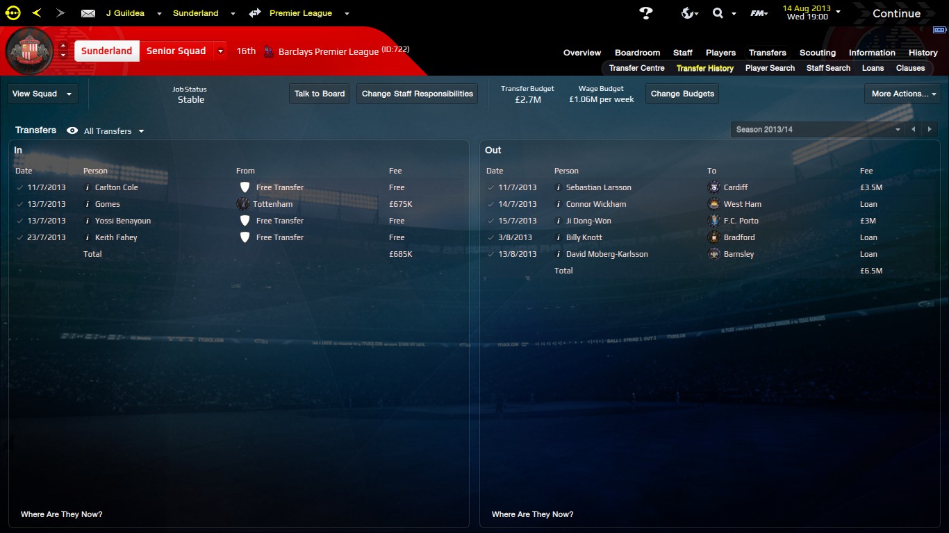 Sunderland as of today have relieve manager Paolo Di Canio of his managerial duties at the club after a nasty bust up with the players. The Italian had only been in charge for eight games in which he claimed a priceless win at 0-3 win against Tyneside rivals Newcastle United at St.James Park and a win against Everton which was enough to keep the side in the Premier League. Their is not a lot of interest around the job with journalist labeling it as a "Poison Chalice". Sunderland fans have become accustom to the manager merry go around with over 4 managers sacked in the last 5 years.