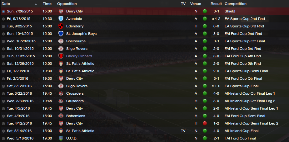Next the Rovers had another amazing run when it came to all of the major Irish Cups. It was once again an easy sweep of the four major trophies (Irish Shield, FAI Cup, EA Sports Cup and the All-Ireland Cup). The senior quad will be looking to repeat once again next season.