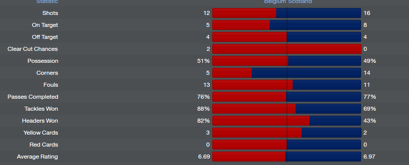 Belgium thought they had done enough to secure at least a draw until the 82nd minute when Kompany turned from Hero to Villain with an own goal from a Charlie Mulgrew corner.