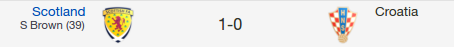 Man of the match for the second game running was vice captain Scott Brown of Celtic with a goal in each game and also being a rock in the midfield