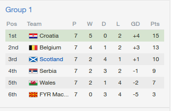 Scotland have made it into the playoff stage after beating macedonia 4-1 and wales 1-0.This meant that heavy group favourites Belgium have been knocked out of the world cup at this stage which is a shock to all.