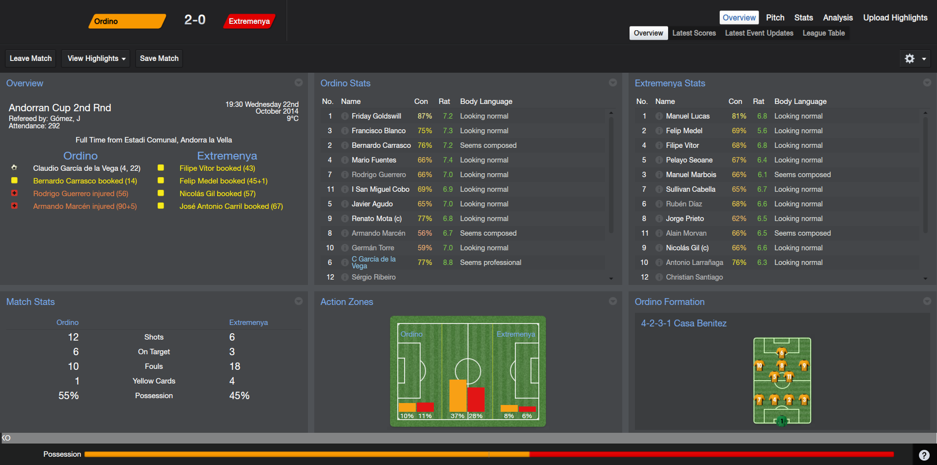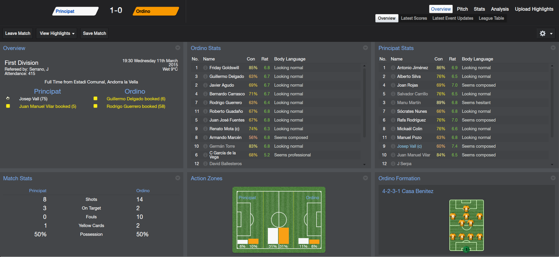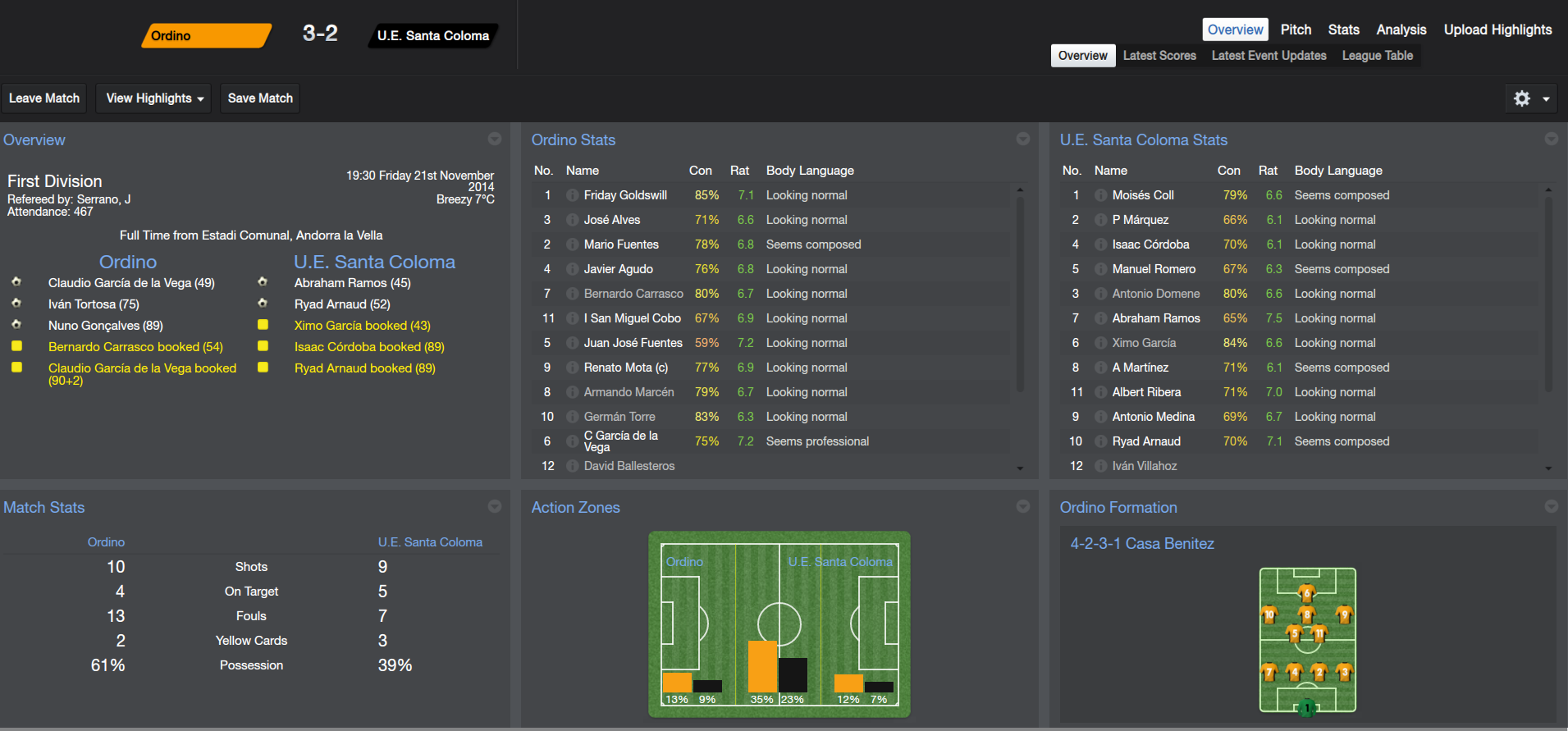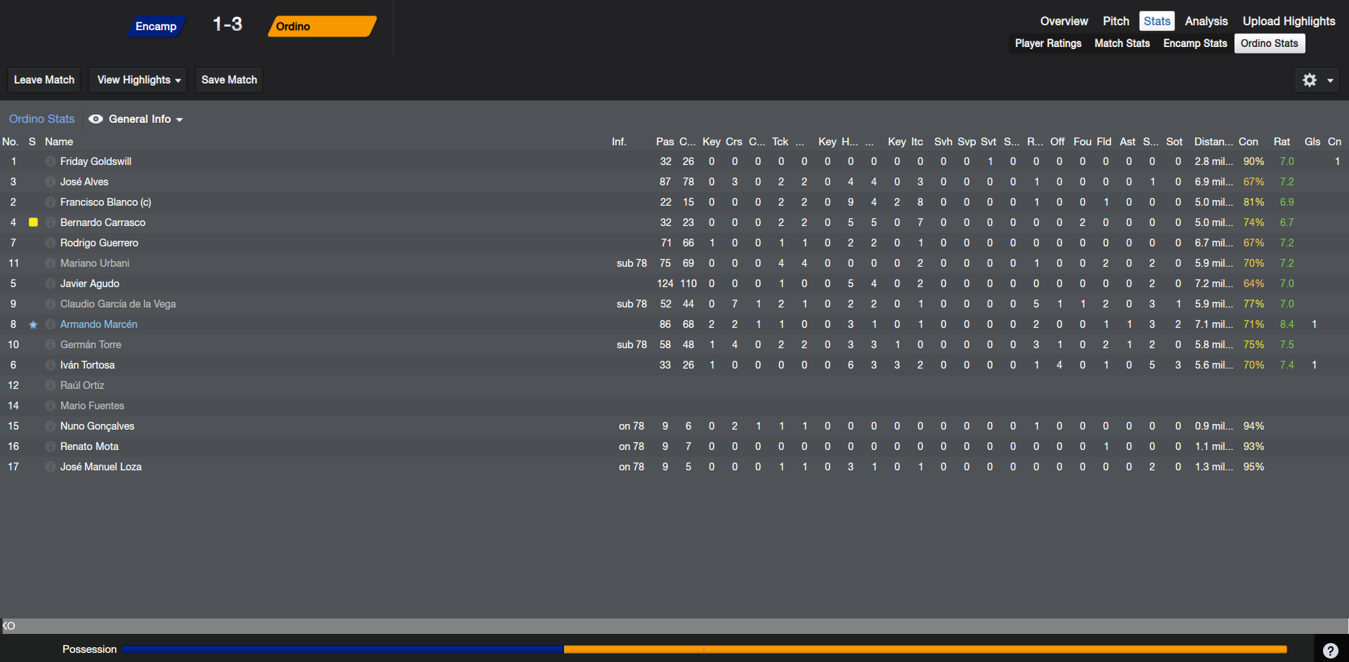 but the ref gave a penalty two minutes later we take the chance to be a goal down at half time. Rallied the boys and sent them out and we smash the doors all the way to 80 mins with no avail but then Marcen picks up a second and a 91st minute winner by Fuentes. Brings us into the title race and leading