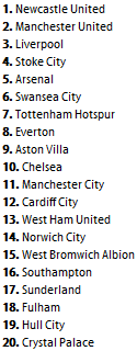 Newcastle's three opponents sit in the three relegation spots (co-incidence? I think not), and the Magpies sit happily at the top of the table - Liverpool and Manchester United posing the only real threats.