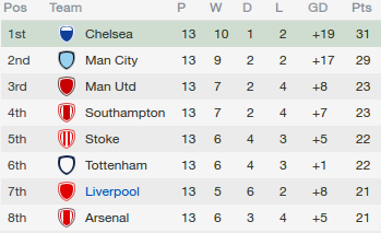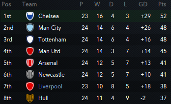 http://i.dailymail.co.uk/i/pix/2013/12/30/article-2531046-1A5585A900000578-505_634x425.jpgA 1-0 defeat against Chelsea was far from the ideal start Liverpool will have wanted to their month, but Christian Benteke's 28th minute strike, and some solid goalkeeping from Courtois in the Chelsea goal meant the blues left Anfield with all three points.