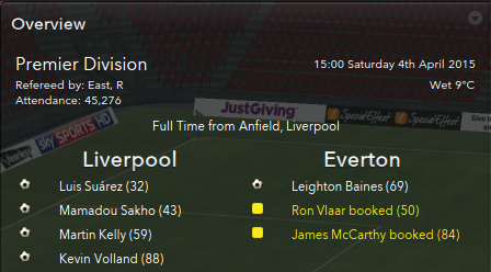 Luis Suarez had the Liverpool fans in raptures after 40 minutes, when a Coutinho corner was cleared to the edge of the area, from where Suarez fired a shot high and hard into the top corner of the net, much to the dismay of Dante, who immediately accosted the linesman, claiming that there had been a foul in the box; a claim which replays proved was without merit.