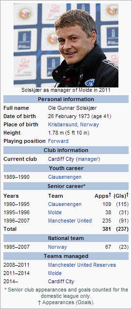 I will be playing as Ole Gunnar Solskjær as manager of Cardiff City in the Barclays Premier League.