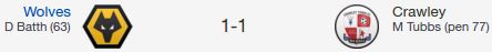 Wolves XI: (4-1-3-2): A McCarey; S Ricketts (C), G Elokobi, R Stearman, S Golbourne; J Morris; J Henry, K Foley, K McDonald; L Clarke, N Dicko