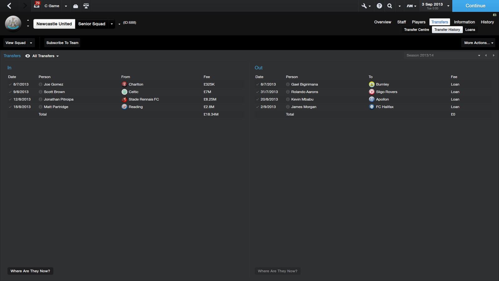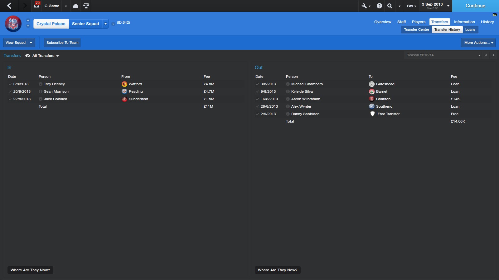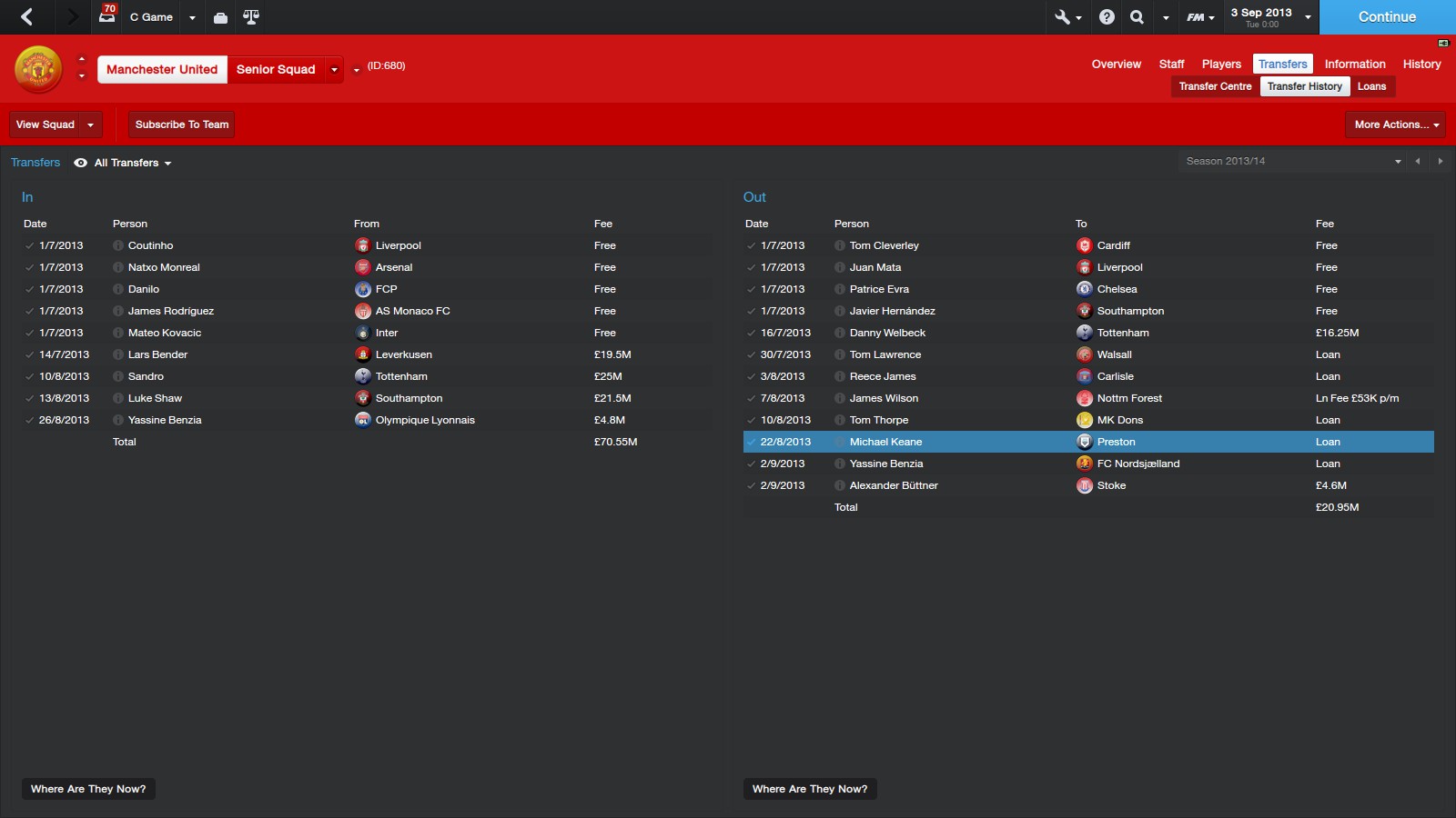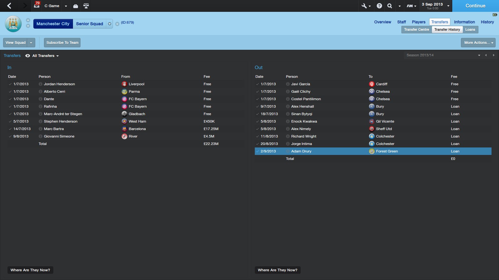 Your manager will be given the remainder of your transfer and wage budgets to sign players that he so desires. This means that you will be able to rely on him to find a player to fill a gap in your squad rather than having to do it yourself. However, the manager may sell any one of your players to another team.