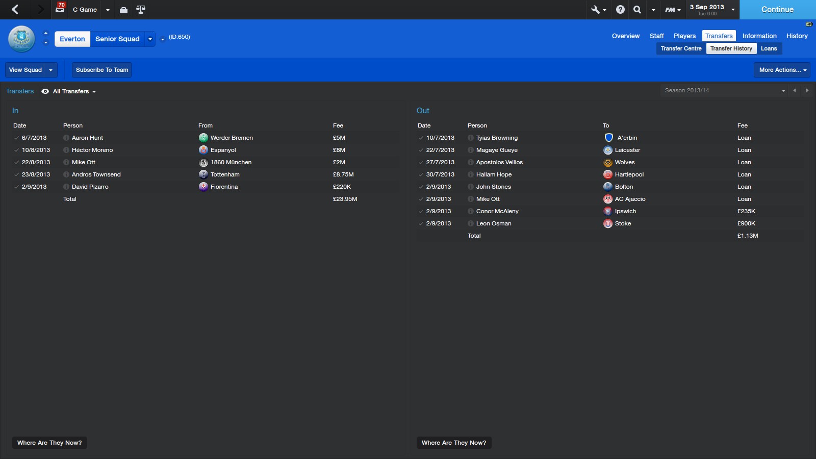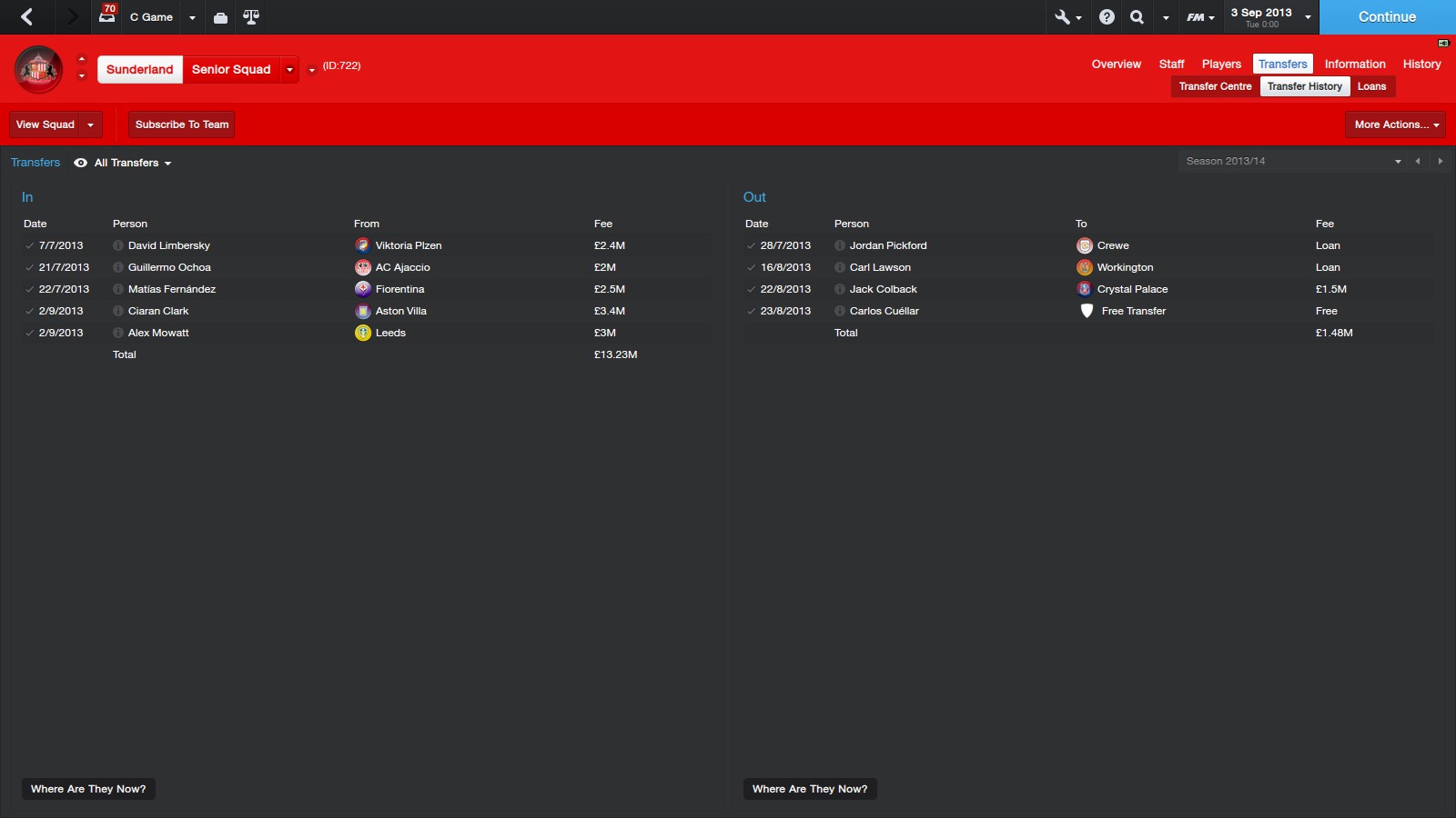 You may have 5 foreign transfers and 3 transfers from the lower leagues in England. To do this, you must name the player and his club in a PM. In this PM you must also post the transfer fee you wish to pay, which must be over the player's value. You first offer will be final