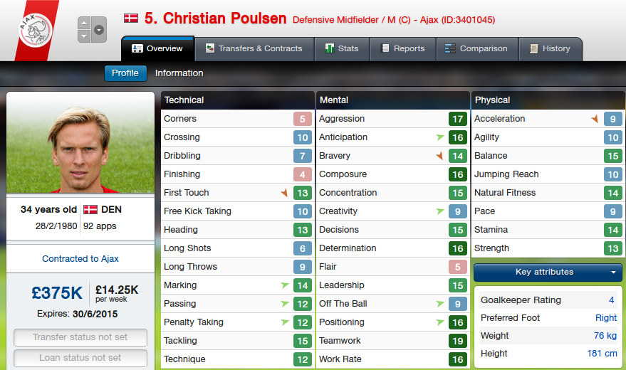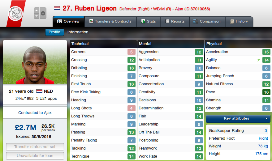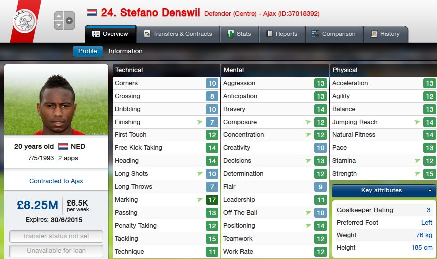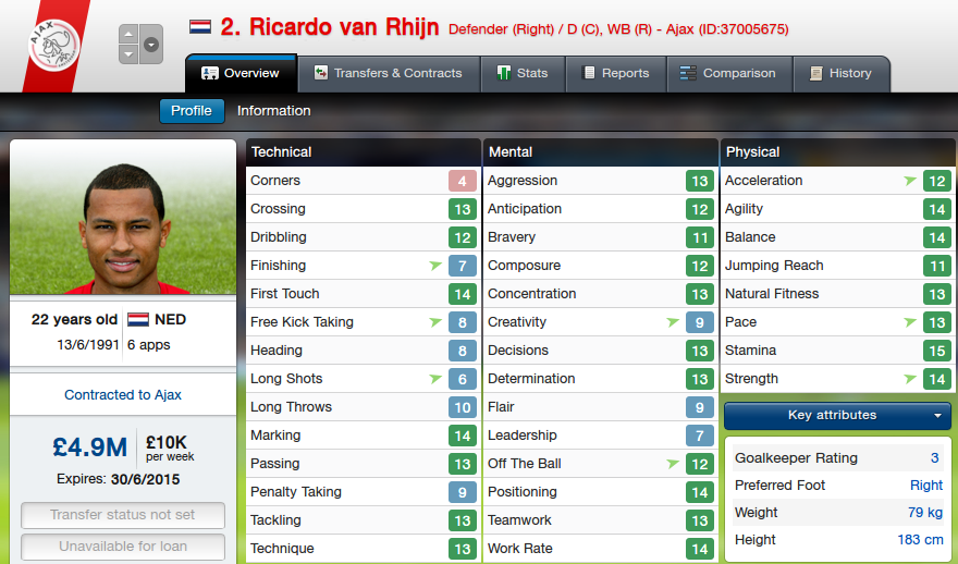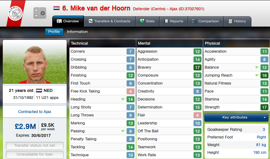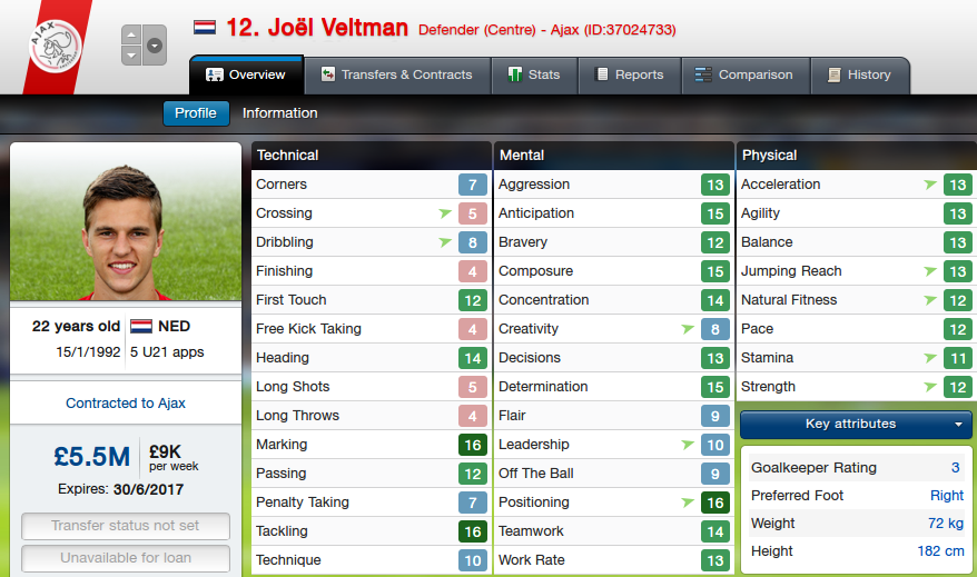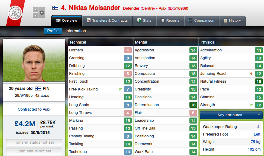 All four centre backs are going to be incredible in the future, but only vice-captain Niklas Moisander has reached his full potential. What I will probably do is rotate Moisander, Veltman and Denswil for the first few games and then play whoever has the highest average rating - although I will never doubt van der Hoorn, who could break into the first team this season, and if not this season, it could definitely happen next season.