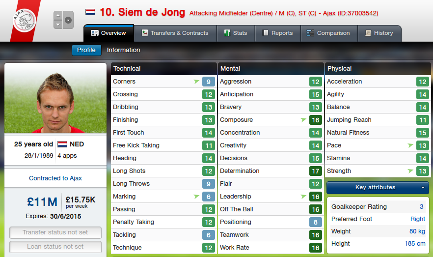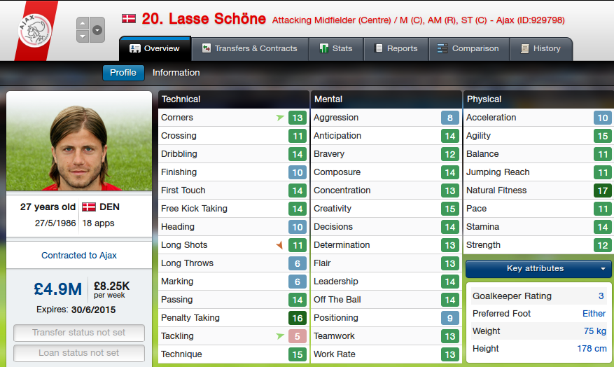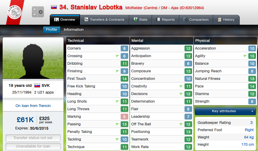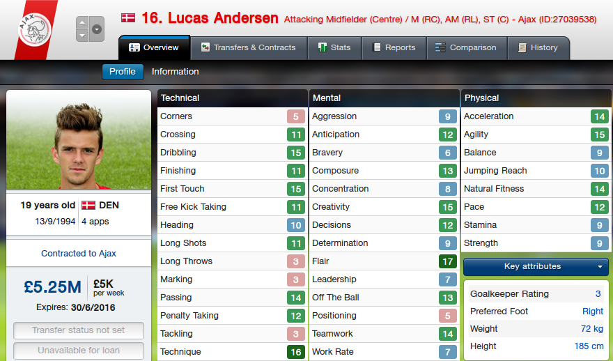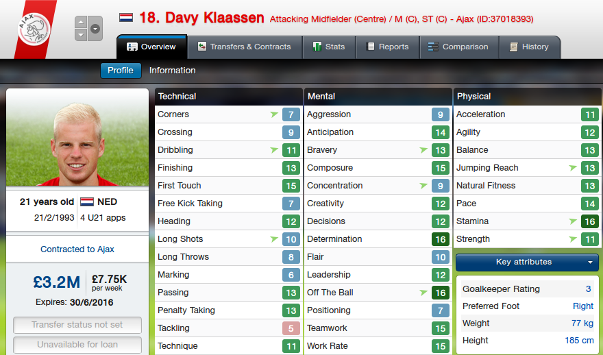 I don't use attacking midfielders, so Klaassen seems pretty useless to me. I will sadly listen to any offers made for him, and I could make a load of money out of a player who is no real use to me at all. Either that, or I train him to play on the right wing, because I honestly don't want to lose a talent like him.