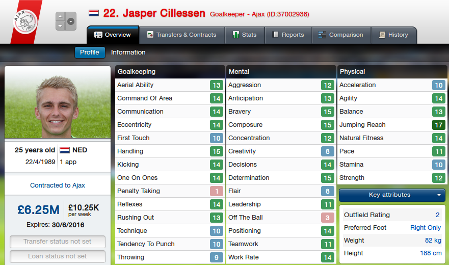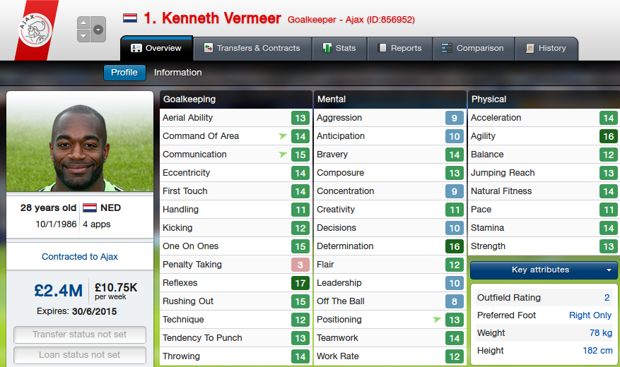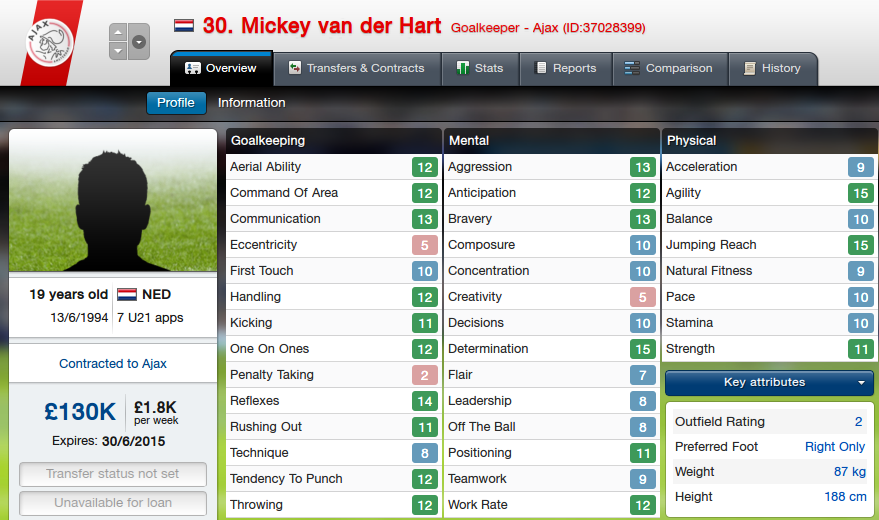 An impressive three goalkeepers - with Vermeer and Cillessen set to fight each other for the spot in the starting XI. Van der Hart may start in cup games or if either Vermeer or Cillessen are injured, but at 19, he probably doesn't expect much first team football at the club this season. In a few seasons, however, he could be a star Eredivisie goalkeeper, which is why he's in the first team just in case.