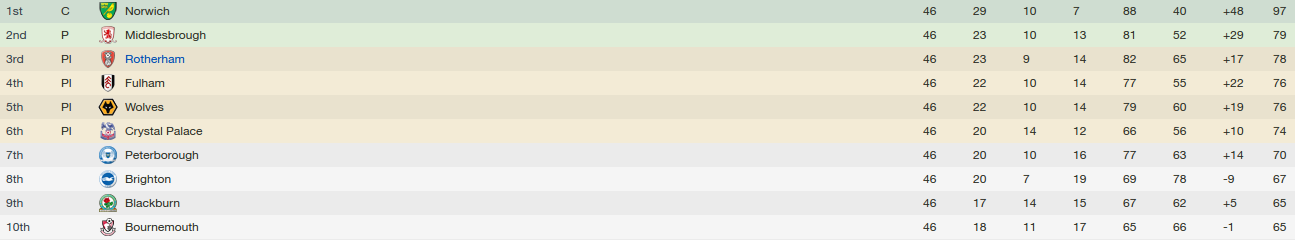 Stelling: And so Middlesbrough taking the lead means they also take their place in The Premier League as full-time whistles blow. Oh I do love football. The Wolves game has ended 1-0 to Birmingham which means Wolves will be in the play-offs, joining them are Rotherham who could only muster a draw against Sheffield United. But moving on to the Premier League are Middlesbrough who have today beaten Brighton in the very last minute 3-2.