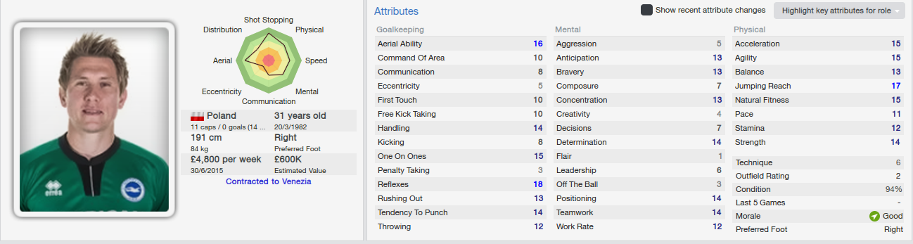 Tomasz has a lot of qualities, but hisbest would be his aerial ability, his amazing reflexes, his amazing intuition at one-on-ones duels and his positioning. He also has a very solid background, as in his career, he played for clubs like Hertha BSC, WBA and eve Manchester United!