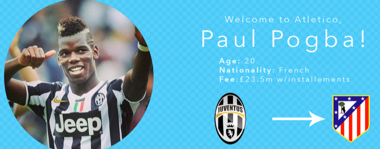 Atletico Madrid's accusation of Paul Pogba stands as the most expensive and surprising of the window so far. Juventus had made their reluctance to sell Pogba very clear to the footballing world, however Legend obviously didn’t let up, or accept this philosophy. For the initial fee of £23.5m, this deal is almost a coup really, considering Pogba current ability, and the potential he has yet to discover. At the ripe age of 20, Pogba is one of the hottest players around.